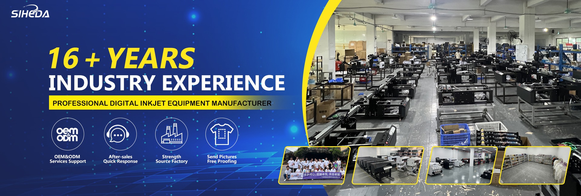 Main products: UV flatbed printer, DTF printer, inkjet printer, print head, ink, accessories, and consumables. widely used in textile, plastic sheet, metal plate, acrylic sheet, wood board, leather, glass sheet, phone case, ceramic tile, etc. With more than 14 years of experience in the printing industry, we keep up with market new trends, develop new-technology printers. 'SIHEDA printer' is becoming an international brand and our development vision is to become the world-leading printing solution provider.